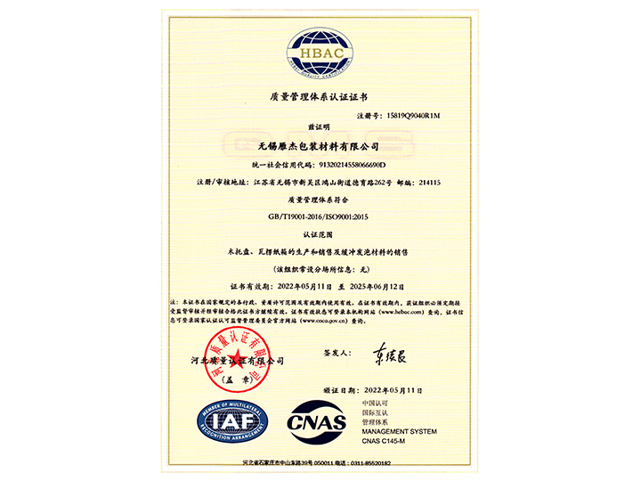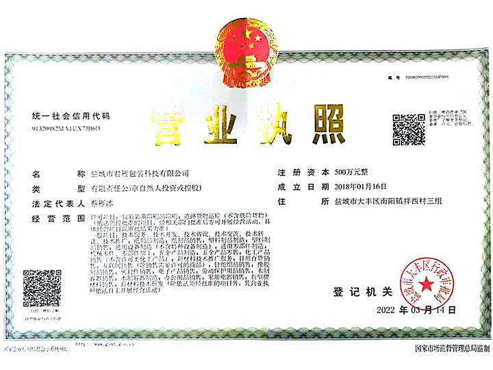 企業(yè)資質(zhì)鹽城市君雁包裝科技有限公司,始創(chuàng)于2021年,公司面積20000平方米。公司位于中國鹽城大豐區(qū)南陽鎮(zhèn)祥西村三組,是一家集研發(fā)、生產(chǎn)、銷售為一體的包裝材料企業(yè),產(chǎn)品涉及:外包裝紙箱,防水紙箱,涂蠟紙箱,浸蠟紙箱,冷柜紙箱,木包裝箱,免熏蒸木包裝箱,木托盤,EPE珍珠棉,珍珠棉袋,EVA板材,EVA大板,包裝海綿等包裝材料。包裝設(shè)計制造符合API、ANSI、ASTM、NACE、ISO、EN、BS、DIN、MSS SP等國際標(biāo)準(zhǔn)的要求,在鹽城以及周邊城市的市場上有良好的評價。公司擁有先進的生產(chǎn)設(shè)備,嚴格的管理制度和高素質(zhì)的人才團隊,保證了高質(zhì)量的產(chǎn)品和良好的服務(wù),同時我司還可以根據(jù)客戶特殊工況需求,提供全套包裝技術(shù)解決方案。